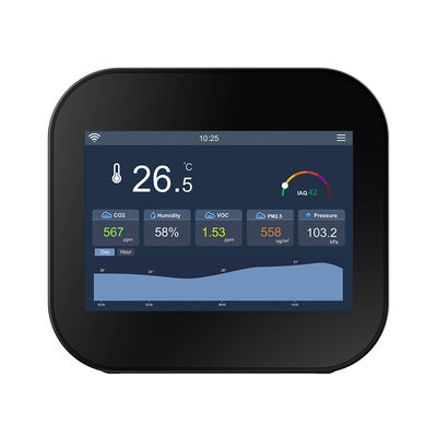 User-Friendly Touchscreen Display: Clear visualization of real-time IAQ data and historical trends